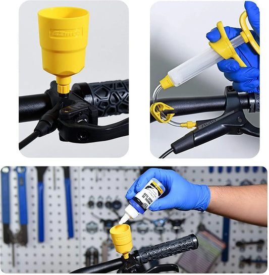 Kit universel de purge de freins vélo – Compatible Shimano/SRAM/Magura/Tektro (bouteille + entonnoir + adaptateurs)