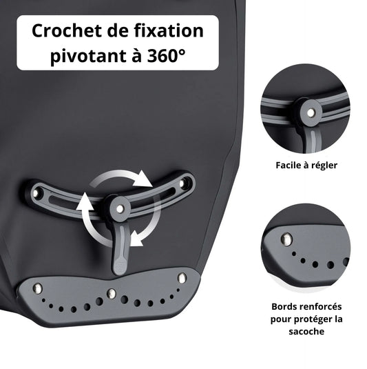 Les sacoches vélo sont idéales pour emporter des affaires de travail, de sport ou de voyage. Elles se fixent facilement sur les porte-bagages ou le cadre et existent en version étanche pour rouler par tous les temps.