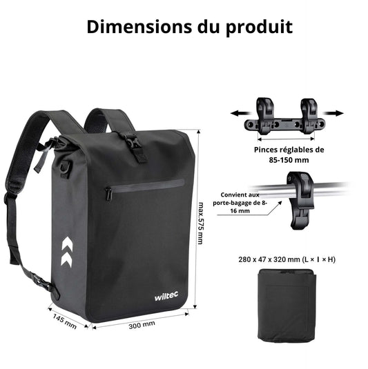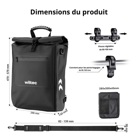 Sacoche vélo pour porte-bagage 28 L Wiltec – Étanche