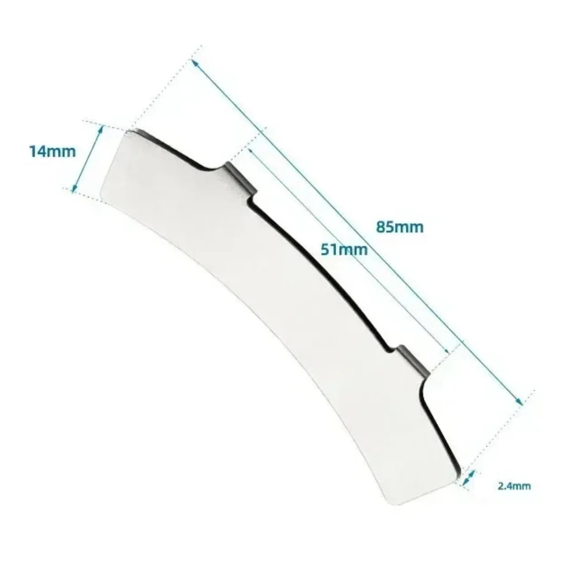 | Dimensions | Longueur totale : 85 mm • Partie intérieure : 51 mm • Hauteur : 14 mm • Épaisseur : 2,4 mm | ||