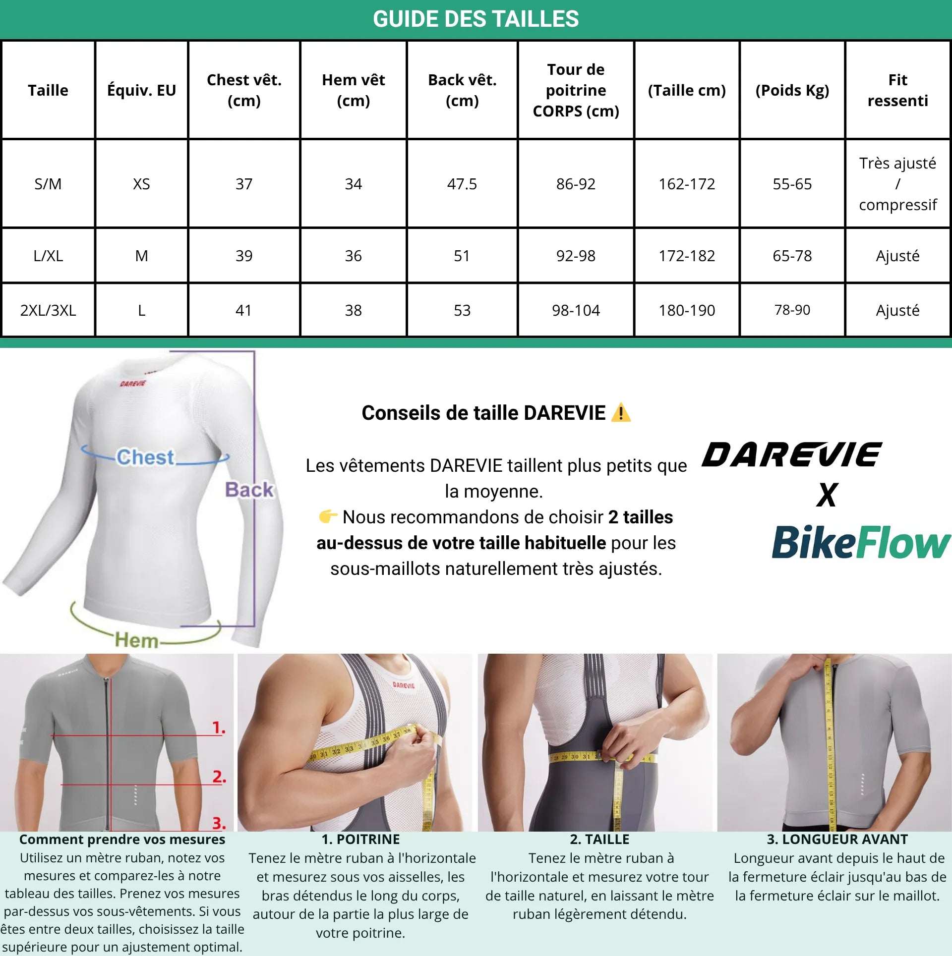 👉 Veuillez bien vous référer au guide des tailles en deuxième photo et description : les vêtements DAREVIE taillent plus petits que la moyenne (souvent +2 tailles conseillées pour les sous-maillots très ajustés)